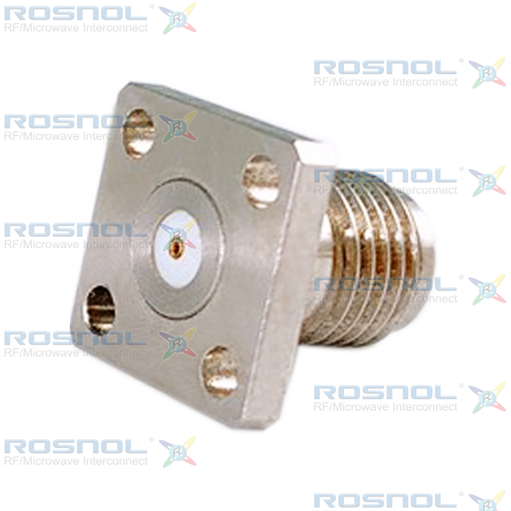 Rosnol’s SMA2BF50-0012B/9X four hole panel flange SMA female RF connector has a maximum frequency of 18 GHz and a max. VSWR of 1.14 GHz or min. Return Loss of 23.69 dB.As a result, this high-quality field replaceable is a good alternative to the interconnect product choices from competitors from Europe, the USA, or other markets.