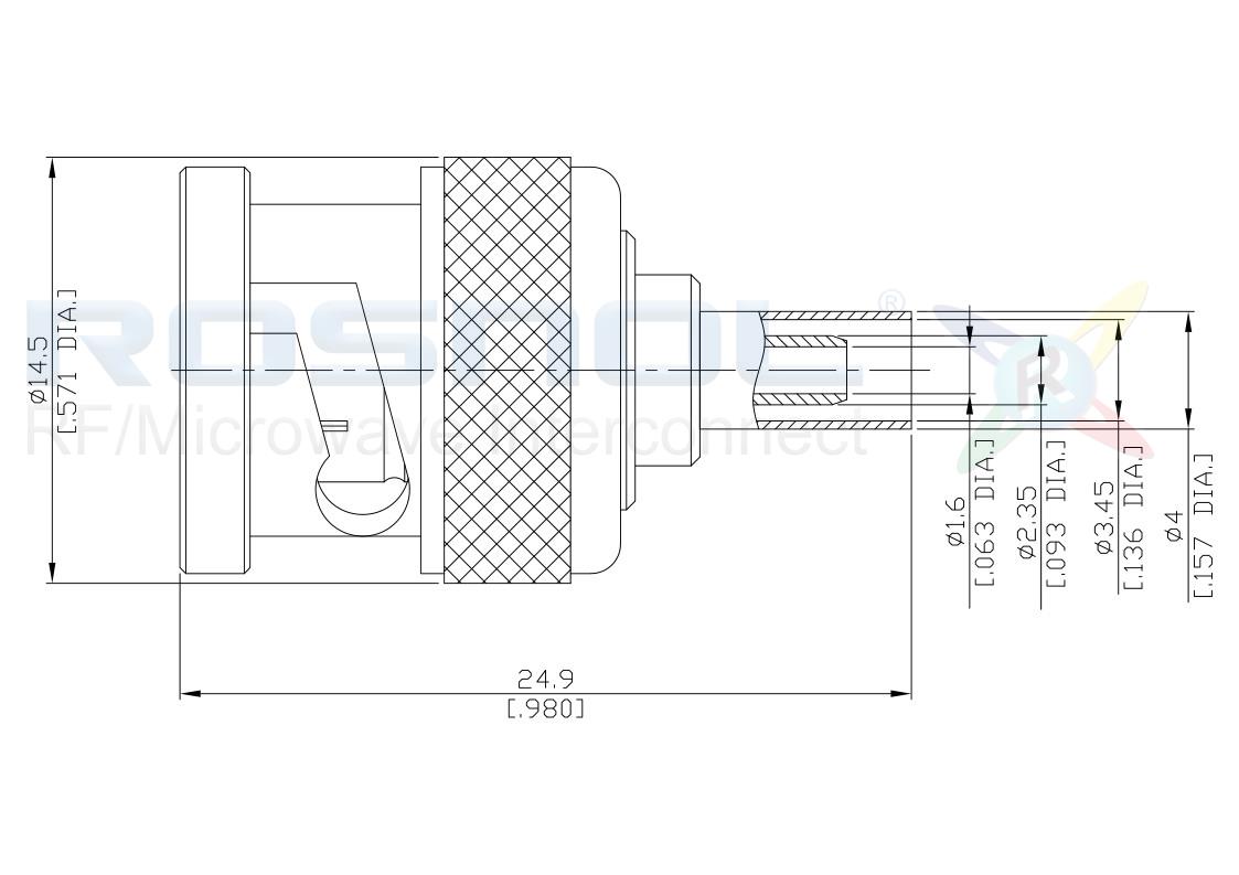 Rosnol's BNC1C50-D316A/144 male BNC RF connector has a maximum frequency of 6 GHz and a max. VSWR of 1.22 or min at 4 to 6 GHz. Return Loss of 20.1 dB. As a result, this high-quality cable connector is a good alternative to the interconnect product choices from competitors from Europe, the USA, or other markets.