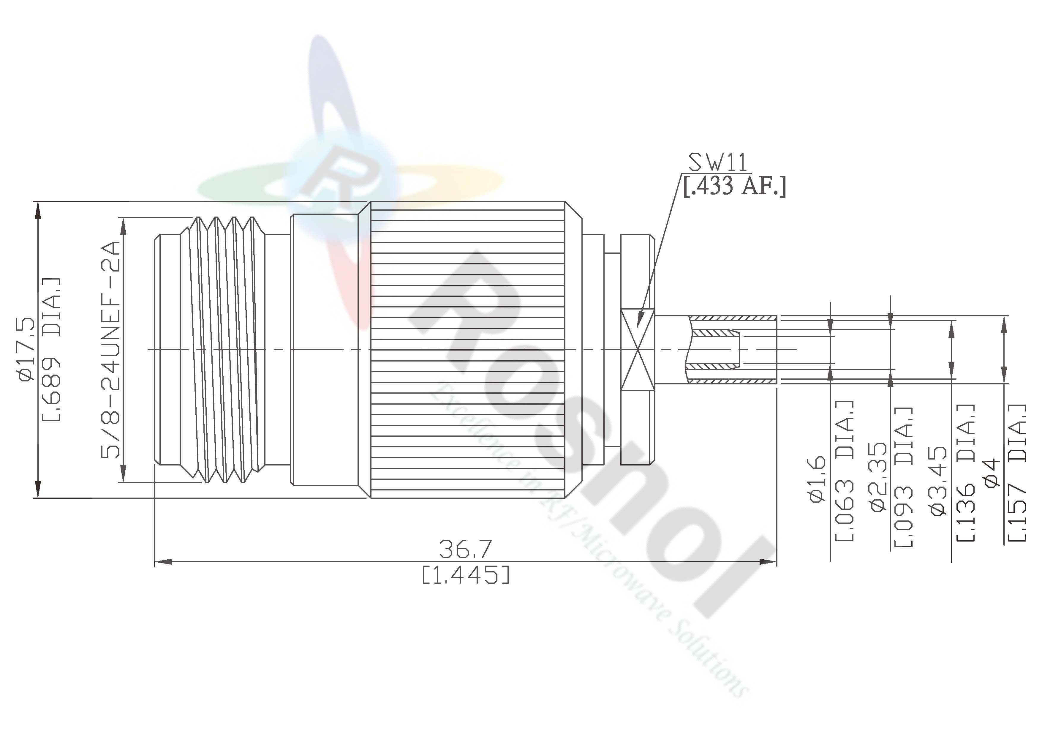 Rosnol's N2C50-D316A/H4 female N RF connector has a maximum frequency of 11 GHz and a max. VSWR of 1.15 or min. Return Loss of 23.1 dB. As a result, this high-quality cable connector is a good alternative to the interconnect product choices from competitors from Europe, the USA, or other markets.