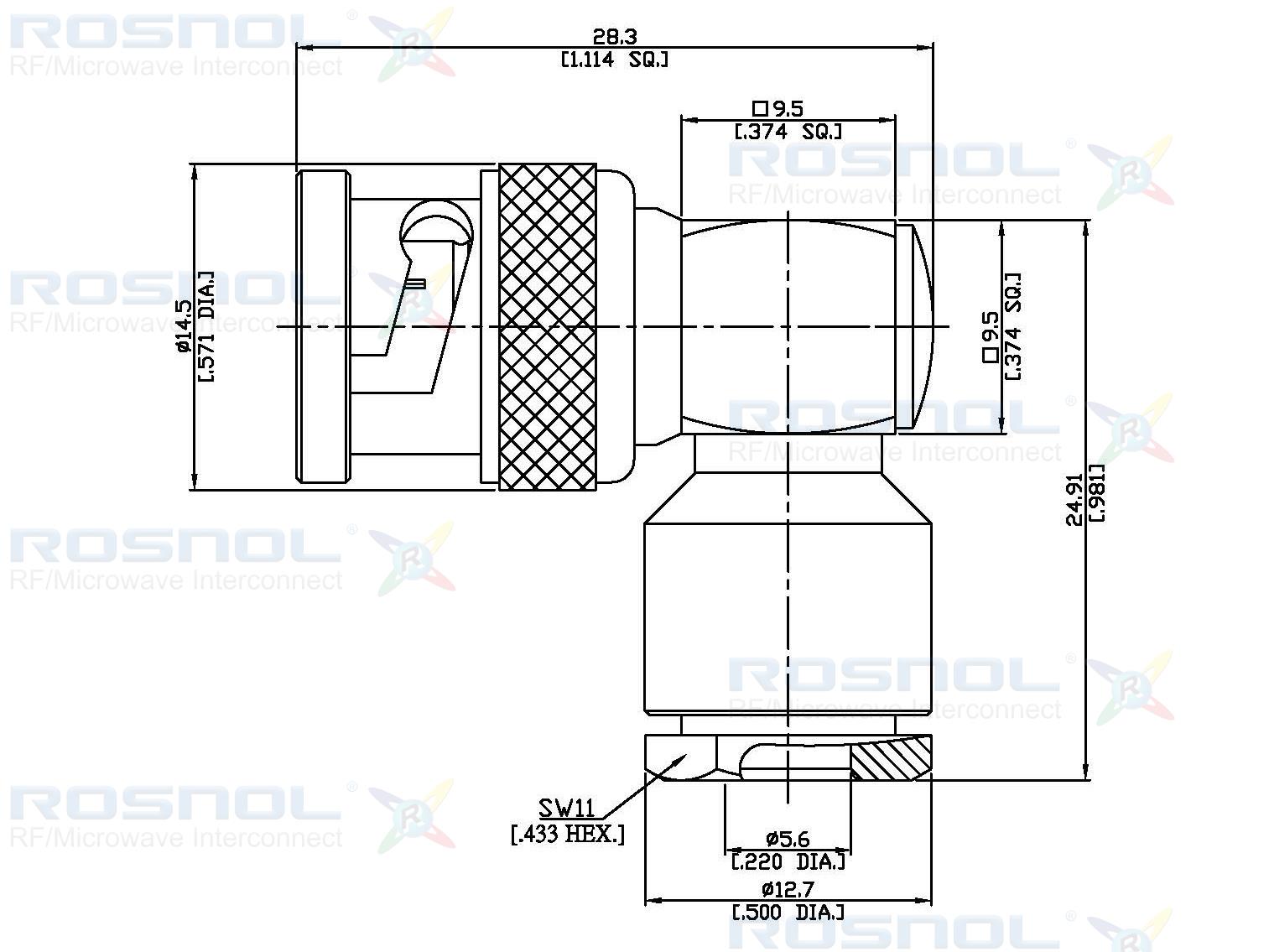 Rosnol's BNC1D59-G058A/133 right angle male BNC RF connector has a maximum frequency of 6 GHz and a max. VSWR of 1.22 or min at 3 to 4 GHz. Return Loss of 20.1 dB. As a result, this high-quality cable connector is a good alternative to the interconnect product choices from competitors from Europe, the USA, or other markets.