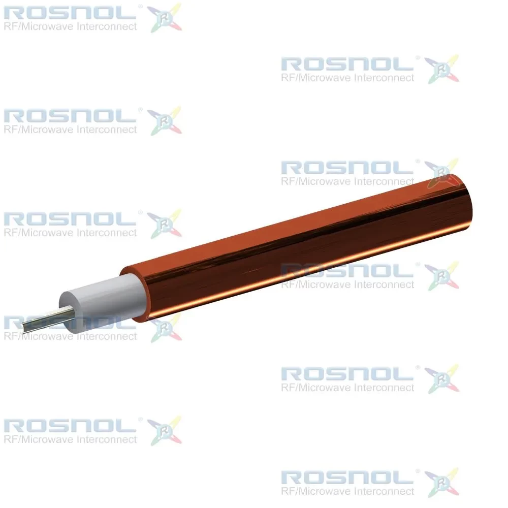The ROSNOL RSR-085C is a 50 Ohm semi-rigid coaxial cable engineered for microwave systems up to 61 GHz. It features a silver-plated copper inner conductor (∅0.51 mm / 0.0201 in), PTFE dielectric (∅1.68 mm / 0.0661 in), and a solid copper outer shield (∅2.18 mm / 0.0858 in). With a minimum bending radius of 10 mm (0.3937 in), the cable supports operating temperatures from -55°C to +125°C.Electrical performance includes 98 pF/m capacitance, 70% signal velocity, and shielding effectiveness > 110 dB up to 1 GHz. Typical attenuation ranges from 0.45 dB/m at 0.5 GHz to 3.29 dB/m at 20 GHz, with maximum CW power handling of 190.3 W. The RSR-085C is RoHS compliant and ideal for precision RF applications requiring enhanced shielding and thermal stability.