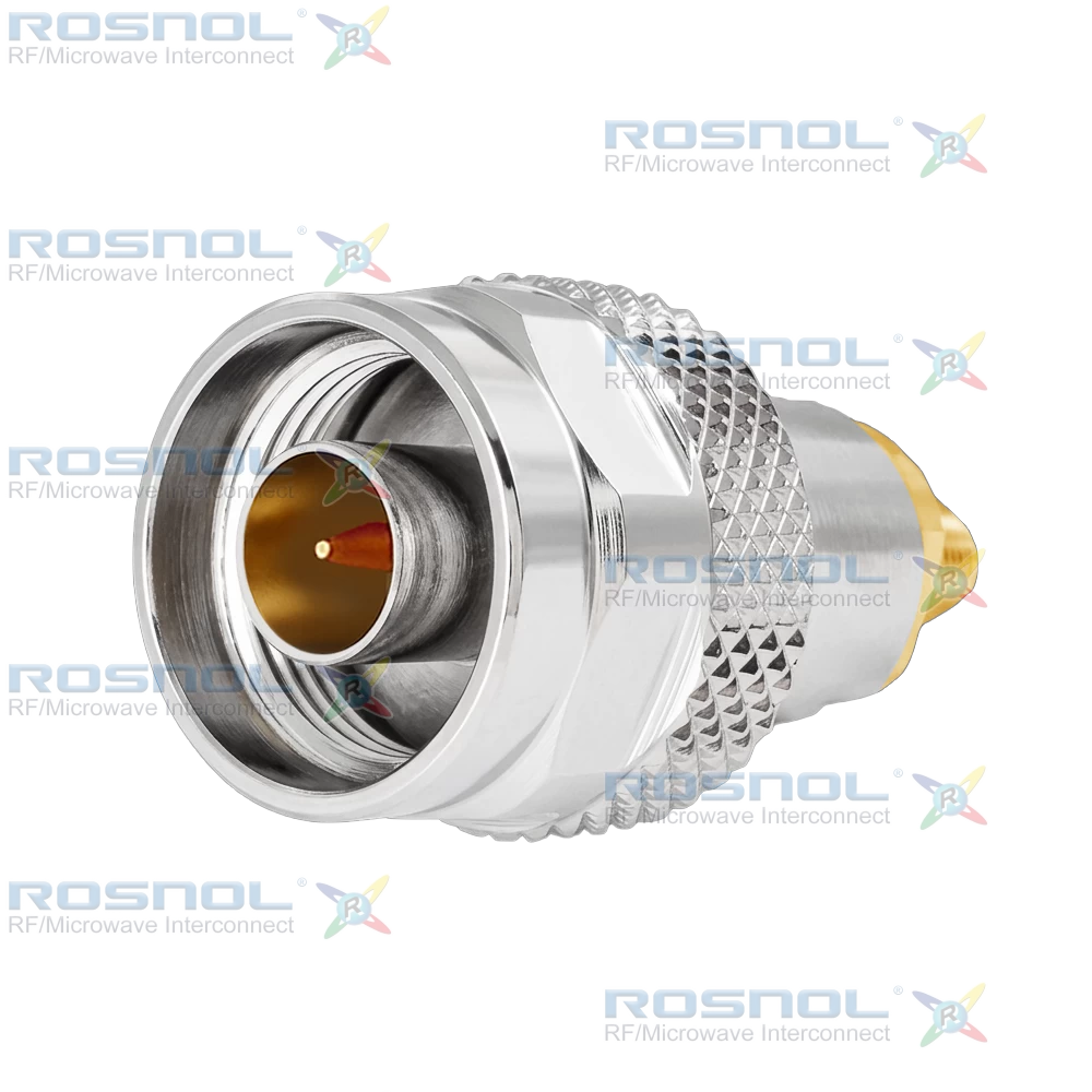 The ROSNOL AD-PCN1A25A/133-91 is a high-precision RF adapter engineered for DC to 18 GHz applications, offering 50 Ω impedance, VSWR ≤ 1.15, and insertion loss ≤ 0.04√F (GHz) dB for superior signal integrity. It ensures insulation resistance ≥ 5 GΩ, test voltage up to 1000 V rms, and working voltage of 480 V rms, with RF leakage ≥ 90 dB up to 1 GHz. Both Precision N and SMA interfaces feature screw-lock coupling for secure connections and durability over ≥500 mating cycles. Recommended torque ranges from 0.70–1.10 Nm for N side and 0.80–1.10 Nm for SMA side.The center contacts use beryllium copper with gold plating over nickel underlayer for excellent conductivity and corrosion resistance. Bodies are brass with nickel or gold plating, and insulators are PTFE for stable dielectric performance. Additional components include a silicone rubber gasket and brass coupling nut with nickel finish. Operating temperature spans -65°C to +165°C, ensuring reliability in demanding RF environments.