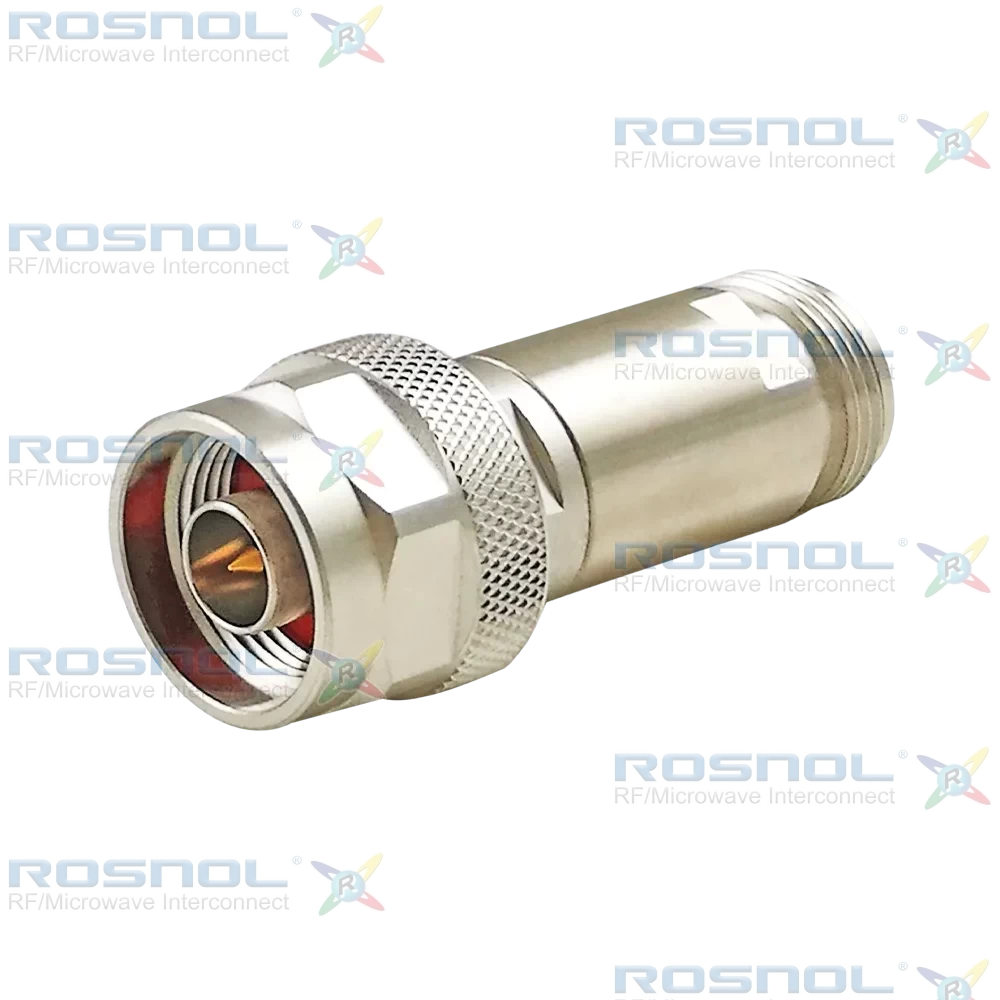 The ROSNOL DB-N1N25A-6G100V/9XX-9X is a high-performance DC Block connector featuring an N plug (male) to N jack (female) interface. Operating from DC to 6 GHz, it maintains a 50 Ω impedance and supports a DC voltage rating of 100V. With a VSWR of ≤ 1.25 (≥ 19.08 dB) and insertion loss ≤ 0.5 dB, this connector ensures reliable signal transmission and effective DC isolation. The screw-lock coupling mechanism provides secure mating, ideal for demanding environments.Constructed with beryllium copper center contacts and gold plating over nickel underplating, the body and coupling nut are made of passivated stainless steel. PTFE insulators and a silicone rubber gasket ensure environmental sealing. Operating temperature ranges from -55°C to +90°C, and the product is fully RoHS compliant.
