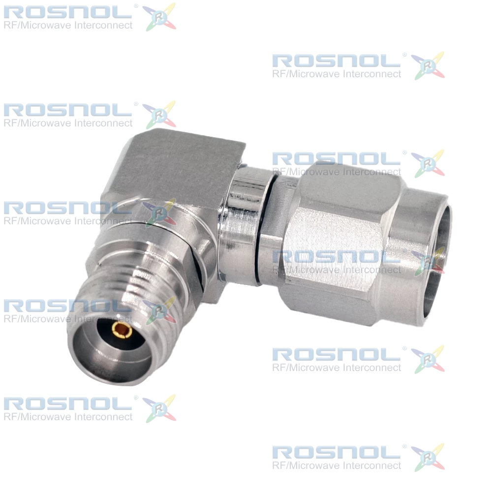 The ROSNOL ASL-K1K25A/9XX-9X is a precision-engineered 2.92mm L-adapter optimized for RF systems up to 40 GHz. It features a screw-lock coupling mechanism, ≥500 mating cycles, center contact captivation ≥20 N, and torque rating up to 1.7 Nm. Electrical specifications include 50 Ω impedance, VSWR ≤1.25 (≥19.08 dB), insertion loss ≤0.05×√F(GHz) dB, RF leakage ≥100 dB up to 1 GHz, and power handling of 20 W. The adapter is rated for 750 V rms test voltage and 250 V rms working voltage.Built with a passivated stainless steel body and coupling nut, the ASL-K1K25A/9XX-9X includes beryllium copper center contacts with gold plating, PEI insulators, and a silicone rubber gasket. It is mechanically compatible with 3.5mm and SMA connectors, and performs reliably across a temperature range of -55°C to +165°C, meeting MIL-STD-202 standards for environmental durability.