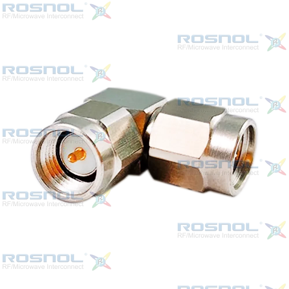 The ROSNOL ADL-A1A15A/9XX-9XX is a right-angle L-adapter featuring SMA plug (male) to SMA plug (male) configuration, supporting frequencies up to 18 GHz with a maximum VSWR of 1.15. It offers low insertion loss (≤ 0.03 × √F GHz dB), high insulation resistance (≥ 5 GΩ), and RF leakage suppression ≥ 100 dB. The adapter is rated for over 500 mating cycles and utilizes screw-lock coupling with a recommended torque of 0.8–1.1 Nm.Constructed with stainless steel bodies and beryllium copper center contacts, the adapter is gold-plated with non-magnetic nickel-phosphorus underplating. PTFE insulators and silicone rubber gaskets ensure mechanical stability and environmental protection. The product is RoHS compliant and operates reliably from -65°C to +155°C.