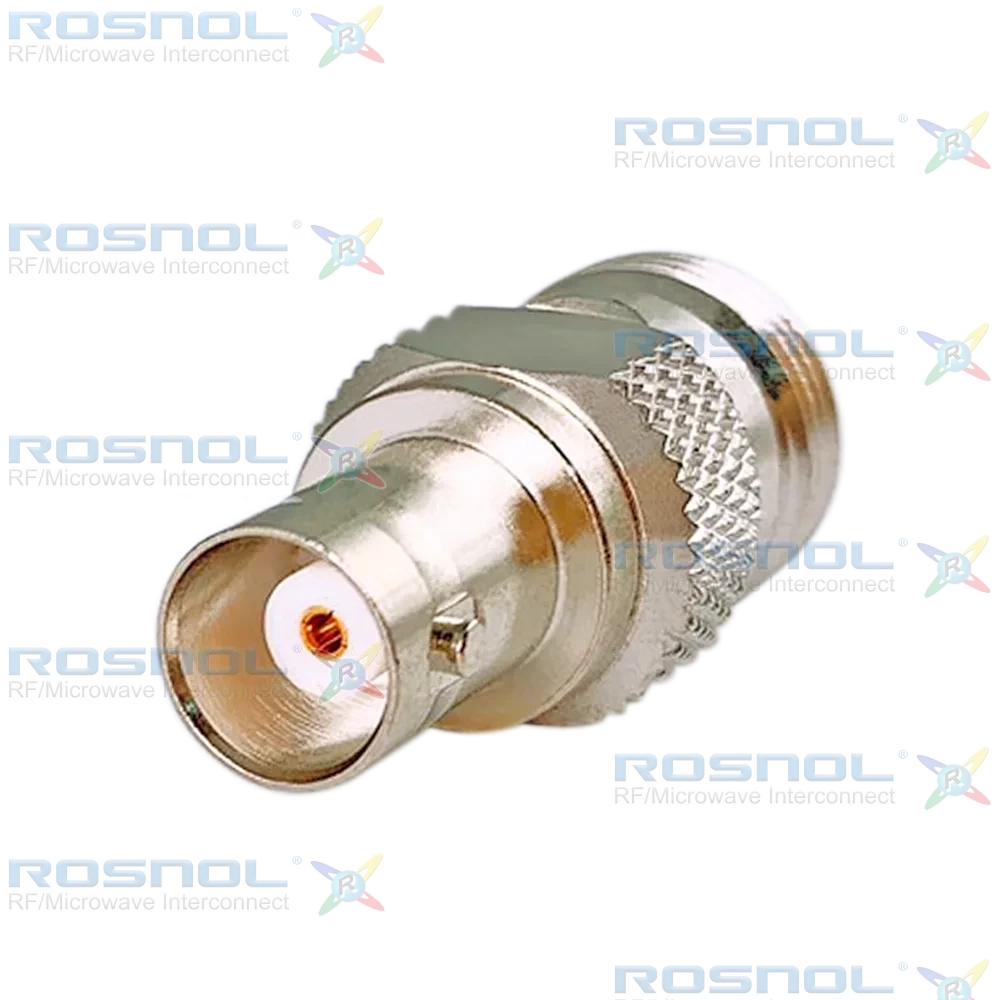 The ROSNOL AD-N2B25A/H3-H3 is a precision RF adapter designed for secure connectivity between N female and BNC female interfaces. It operates from DC to 4 GHz with 50 Ω impedance, VSWR ≤1.20, insertion loss ≤0.05√F (GHz) dB, insulation resistance ≥5 GΩ, and working voltage 400 V rms. Power handling reaches 80 W at 2 GHz. Coupling mechanisms include screw-lock on the N side and bayonet-lock on the BNC side, ensuring reliable engagement with axial captivation ≥28 N and ≥500 mating cycles. Recommended torque for N side: 1.0 Nm.Contacts are phosphor bronze with gold plating over nickel-phosphorus underplating for excellent conductivity and corrosion resistance. Bodies and coupling nuts are brass with nickel plating; insulators PTFE. The adapter withstands −65°C to +165°C and complies with RoHS.