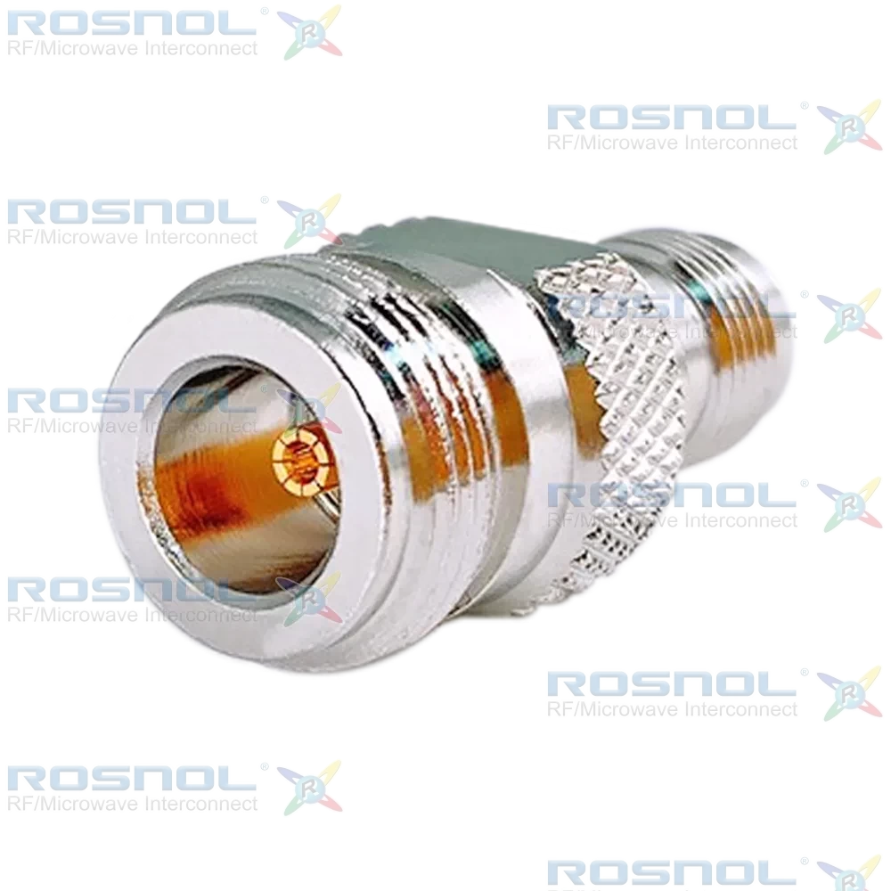 The ROSNOL AD-N2T25A/94-94 is a straight RF adapter engineered for reliable interconnection between N jack female and TNC jack female terminations. It supports DC to 10 GHz frequency range with 50-ohm impedance, VSWR ≤ 1.20, and insertion loss ≤ 0.05√F (GHz) dB. Electrical specifications include insulation resistance ≥ 5 GΩ, working voltage 500 V rms, and power handling up to 80 W at 2 GHz. The adapter employs screw-lock coupling on both sides, rated for at least 500 mating cycles, and features axial captivation ≥ 28 N. Recommended torque is 0.7–1.1 Nm for the N side and 0.46–0.69 Nm for the TNC side.Material and plating details are optimized for corrosion resistance and RF stability. Both center contacts are beryllium copper with gold plating over nickel-phosphorus underlayer, and bodies are brass with copper-tin-zinc alloy finish. PTFE insulators provide excellent dielectric properties, ensuring long-term reliability in harsh environments.