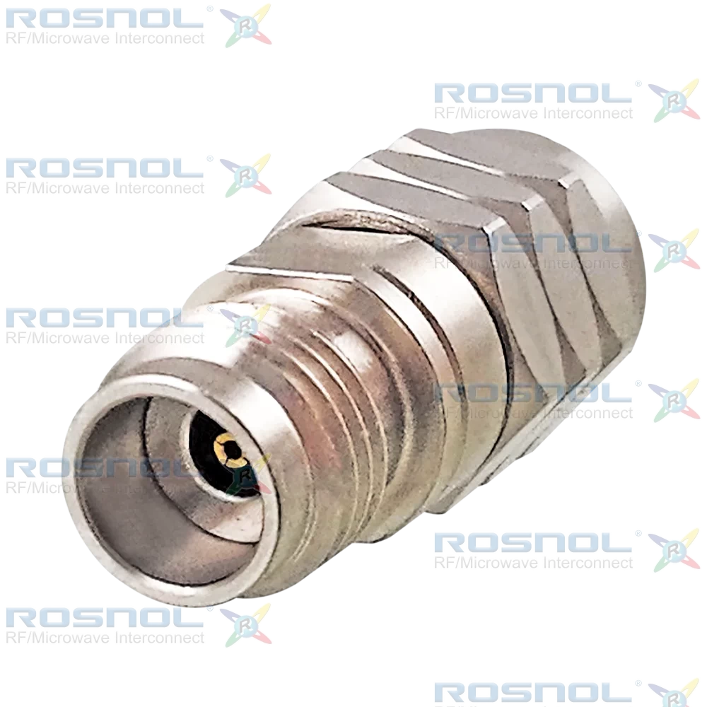 The ROSNOL AD-V1Q25A/9XX-9X is a high-performance 50-ohm straight adapter optimized for DC to 50 GHz, achieving VSWR ≤ 1.20 (≥ 20.8 dB return loss) with insertion loss ≤ 0.05 × √F (GHz) dB. It offers robust electrical characteristics including insulation resistance ≥ 5 GΩ, and secure mechanical engagement via screw-lock coupling on both sides. Center-contact captivation is ≥ 20 N and mechanical endurance is rated at ≥ 500 mating cycles, with recommended torque of 0.80–1.10 Nm and side test torque of 1.65 Nm.Materials and plating are engineered for reliability: beryllium copper center contacts with 3 microinch gold plating over an 80 microinch non-magnetic nickel-phosphorus underplating deliver excellent conductivity and wear resistance. Stainless steel bodies and coupling nuts are passivated to enhance corrosion protection, while PEI insulators ensure stable dielectric behavior. The adapter maintains performance across −60°C to +100°C.