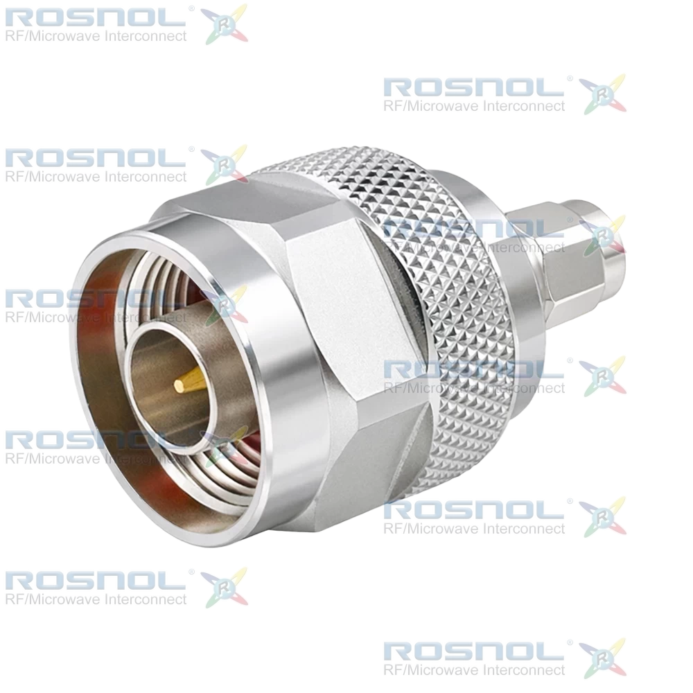 The ROSNOL AD-A1N15A/H33-H33 RF adapter is designed for high-performance RF connectivity between SMA plug (male) and N plug (male) interfaces. It supports 50 Ω impedance, DC to 12 GHz frequency range, and VSWR ≤ 1.15 (≥23.13 dB return loss). It offers low insertion loss, high insulation resistance, and supports up to 200 W power handling at 2 GHz. RF leakage is ≥100 dB up to 1 GHz.Both SMA and N sides feature phosphor bronze contacts, brass bodies with nickel plating, PTFE insulation, silicone rubber gaskets, and screw-lock coupling mechanisms. The adapter supports ≥500 mating cycles and operates within -5°C to +165°C, meeting MIL-STD-202 standards for thermal shock, vibration, corrosion, and moisture resistance.