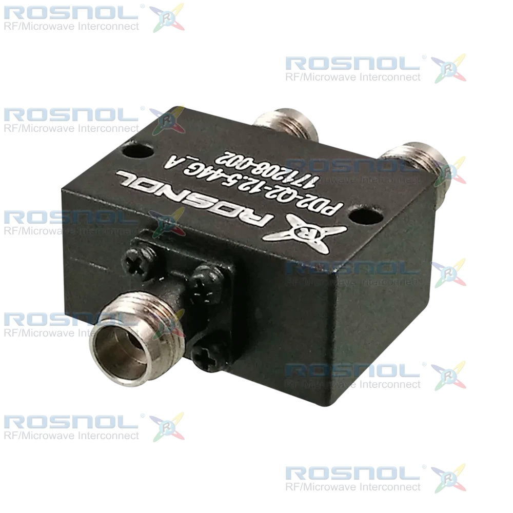 The ROSNOL PD2-Q2-12.5-44G_A is a precision-engineered 2-way power divider designed for RF and microwave systems operating from DC to 44 GHz. Featuring RPC2.4 jack connectors and 50 Ω impedance, this compact unit ensures low insertion loss (≤ 1.3 dB), excellent amplitude balance (≤ 0.4 dB), and phase balance (≤ 5°), delivering stable and accurate signal distribution across high-frequency applications.Built with a rugged black-painted housing, the PD2-Q2-12.5-44G_A measures 25.4 × 19 × 12.7 mm and weighs 55g, offering a space-efficient solution for lab and system integration. It provides strong isolation (≥ 16 dB), input VSWR ≤ 1.7, and output VSWR ≤ 1.6, minimizing signal reflections and enhancing overall system performance. The device operates reliably in extreme environments, with a temperature range from -55°C to +95°C, and is fully RoHS compliant.