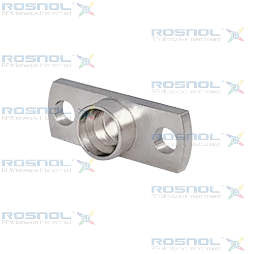The ROSNOL SMP1GTA50FD-0305A/-X is a precision-engineered SMP plug connector designed for high-frequency RF and microwave applications. It offers 50 Ω impedance and utilizes a snap-lock coupling mechanism with full detent for secure engagement, supporting ≥100 mating cycles. The connector operates reliably from -65°C to +165°C, ensuring durability under extreme conditions. Key dimensions include an overall body diameter of Ø12.19 mm \[.480 in], mounting holes of Ø3.93 mm \[.155 in], and hole spacing of 8.99 mm \[.354 in]. The flange thickness is 4.47 mm \[.176 in], providing robust mechanical stability for panel integration.Constructed from high-grade stainless steel with a passivated finish, this connector delivers superior corrosion resistance and mechanical strength. The solder attachment stub terminal ensures secure electrical connection for high-frequency performance. All dimensions comply with DIN ISO 2768-mH tolerances, and the design meets MIL-STD-348B/326.2 interface standards for full detent SMP connectors.