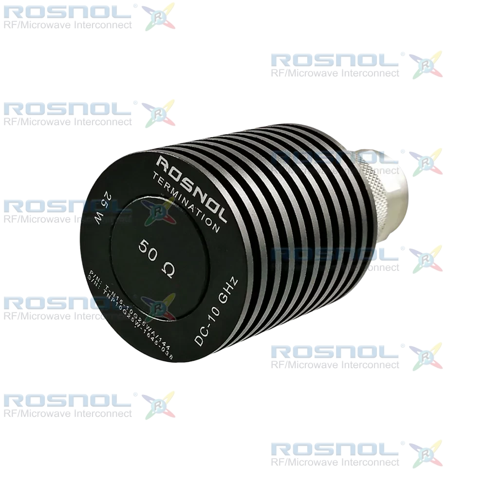 Rosnol's T-N15-10G25WA/144 male N RF termination has a maximum frequency of 10 GHz and a max. VSWR of 1.25 or min. Return Loss of 19.1 dB. As a result, this high-quality termination is a good alternative to the interconnect product choices from competitors from Europe, the USA, or other markets.