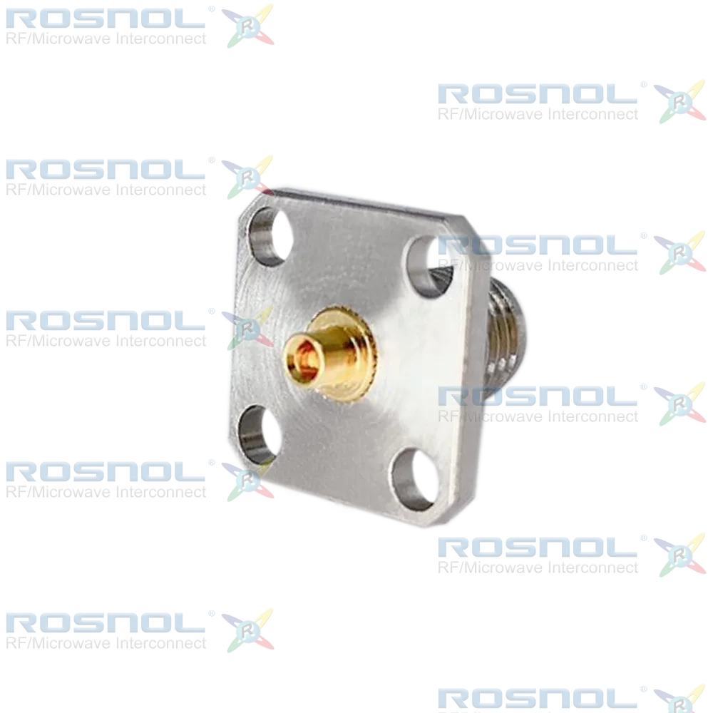 The ROSNOL K2EBF50-0047A/9X is a 2.92mm straight 4-hole panel cable jack designed for RF applications up to 40 GHz. With a 50 Ω impedance, VSWR ≤ 1.35 (≥ 16.54 dB), and insertion loss ≤ 0.05 × √F (GHz), it ensures stable signal transmission across a wide bandwidth. The connector features a screw-lock coupling mechanism, plug-in center contact, and soldered cable entry, supporting stable operation from −55°C to +165°C.The center contact is made of beryllium copper with gold plating over a nickel underlayer. The body and barrel are stainless steel, with the barrel also gold-plated. The insulator is PEI. This connector is compatible with RSF 047, RSR 047, RSF 047 PVC, and RSF 047 FEP cables.