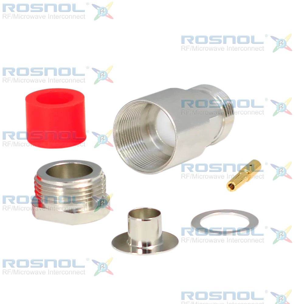 The ROSNOL N2D50-R400A/H4 is a precision-engineered N Jack (Female) connector designed for 50 Ω impedance RF systems, supporting frequencies from DC to 6 GHz. It features a screw-lock coupling mechanism and a versatile cable entry that supports both soldered and crimped termination, with a clamped structure for enhanced mechanical stability. The connector achieves a VSWR of ≤1.30 (≥17.69 dB), ensuring minimal signal reflection and optimal return loss performance. The center contact is engineered for consistent signal transmission across a wide temperature range of -65°C to +165°C.This connector is constructed with a brass body plated in Copper-Tin-Zinc alloy for corrosion resistance and mechanical durability. The center contact is made of phosphor bronze with gold plating over nickel underplating, ensuring excellent conductivity. The insulator is PTFE, and the gasket is composed of silicone rubber for reliable environmental sealing. The clamp nut is also brass with Copper-Tin-Zinc alloy plating. Compatible cable types include Times LMR400, ROSNOL RNL400, RG213, and RG214, with crimp ferrule dimensions tailored to each cable specification.
